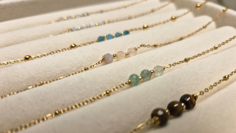 Chaque pierre a son poids, sa présence, son rythme. Je les assemble à la main pour créer des bijoux simples et sincères.